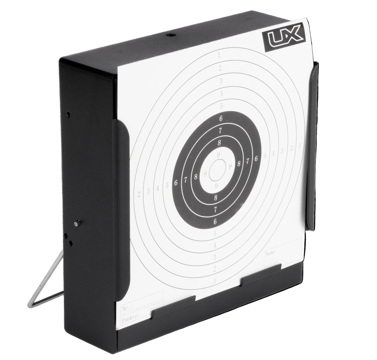 • Marque : UX • Type : Porte cible • Compatibilité / modèle : Cibles 14 x 14 cm • Matériau / construction : Métal • Fonction principale : Support cible