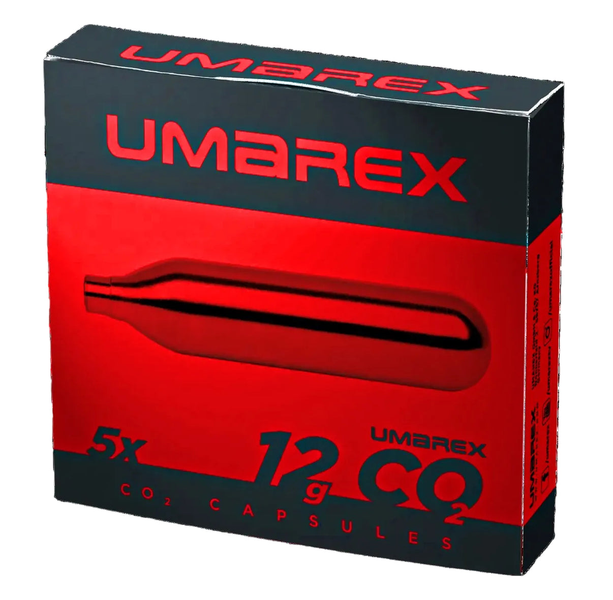 La boîte Umarex de 5 capsules CO2 12 g permet l’alimentation de répliques compatibles. Le format compact facilite le transport et le stockage.