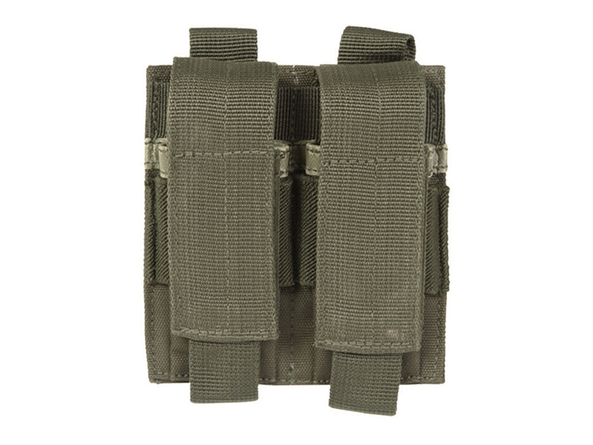 Le Porte chargeurs Double pour pistolet Olive est une pochette Molle conçue pour le transport simultané de deux chargeurs de poing.